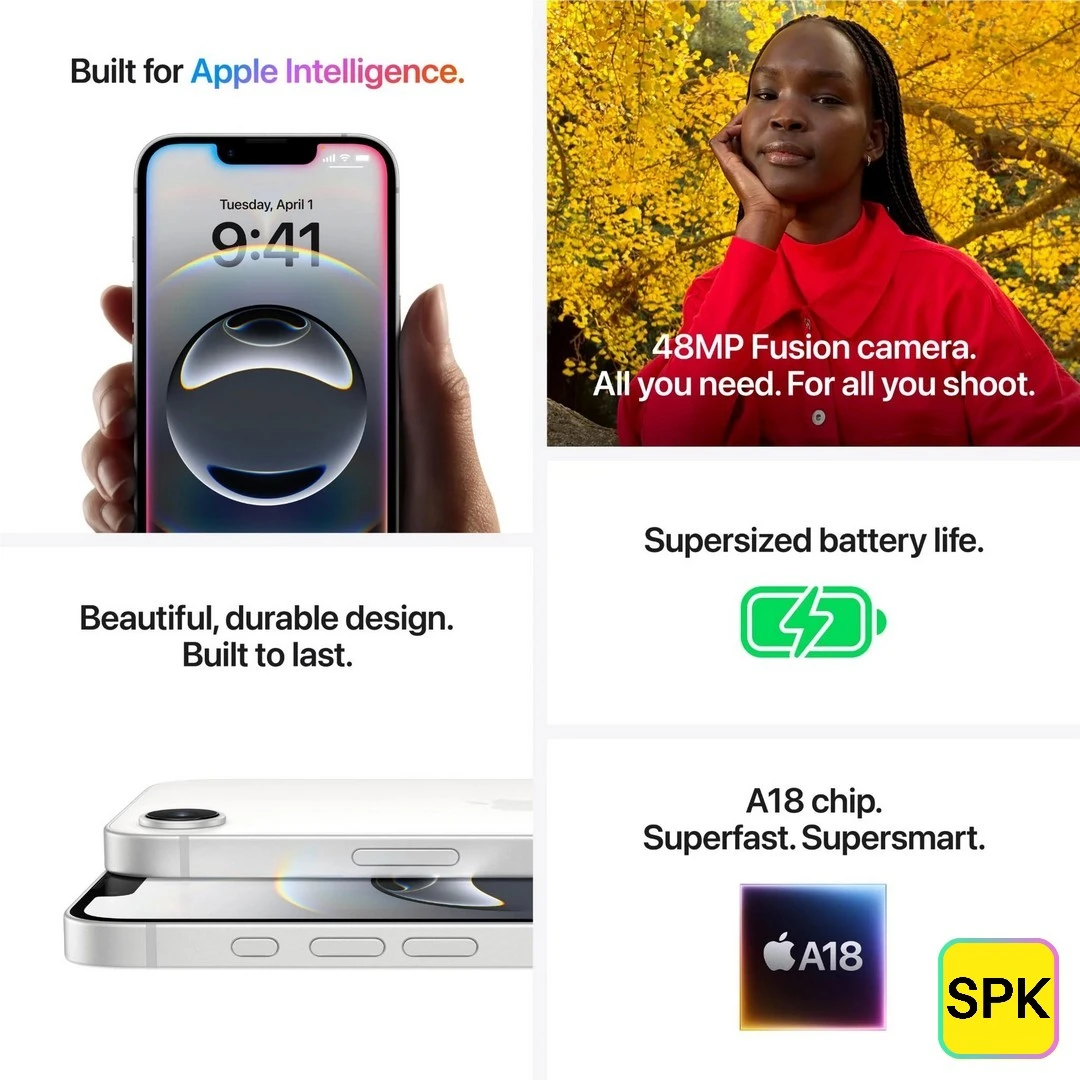 Ships with iOS 18 and built to support Apple Intelligence features (for compatible regions), giving access to the latest software experience at a more accessible price point.
