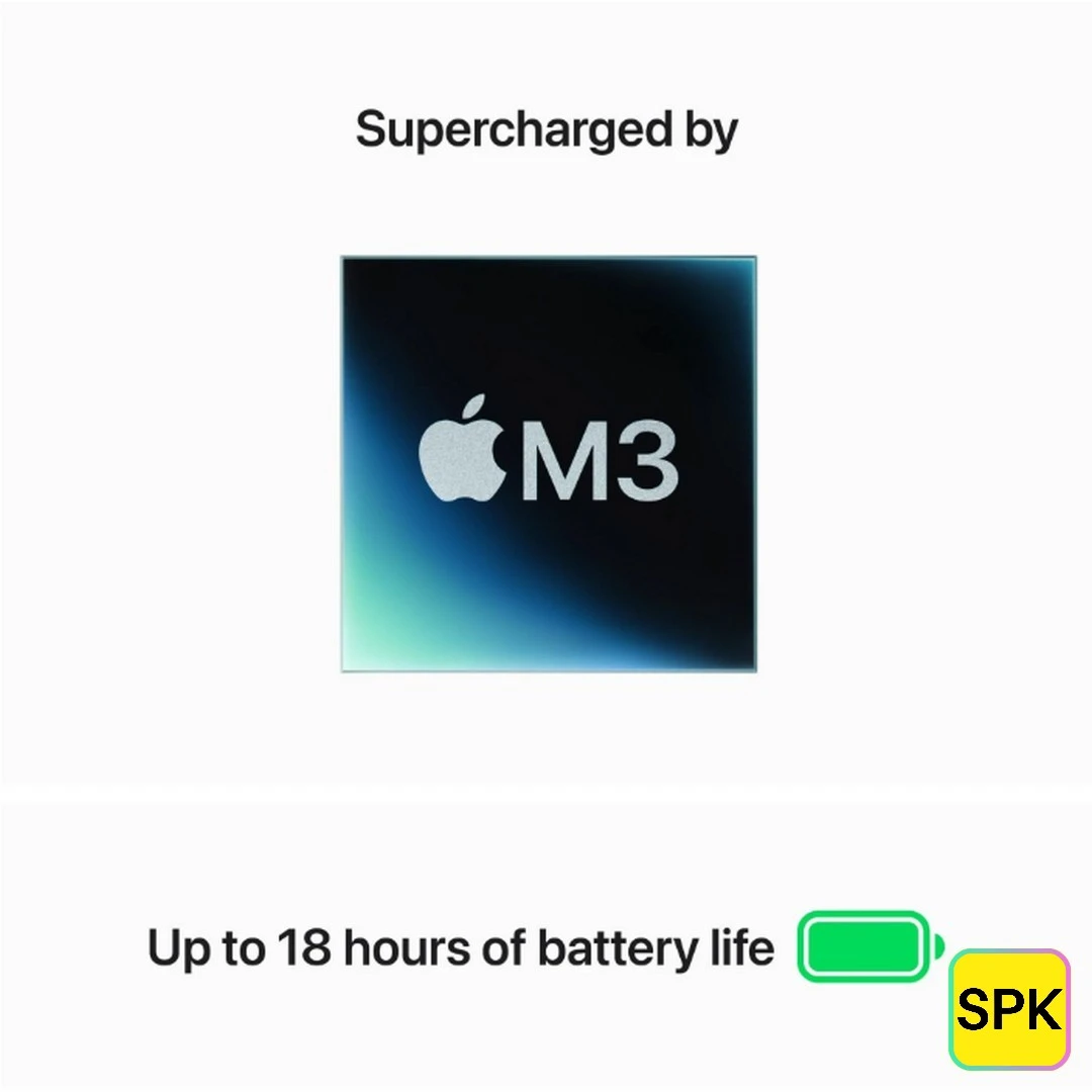 Thanks to the efficient M3 chip and macOS optimization, the MacBook Air 13.6-inch provides up to 18 hours of Apple TV app movie playback or up to 15 hours of wireless web browsing on a single charge. This ensures all-day productivity without frequent recharging.