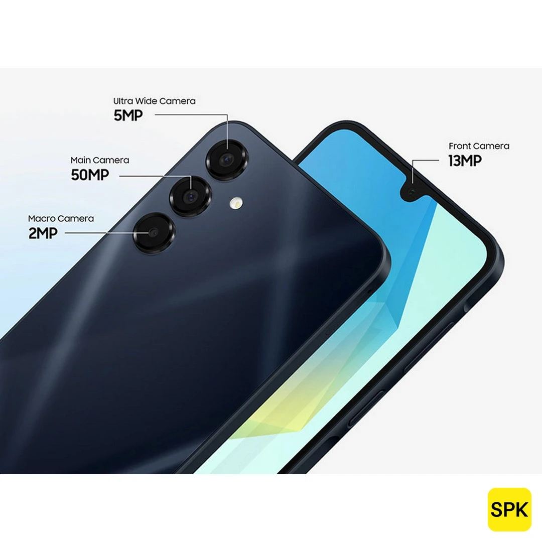 The Samsung Galaxy A16 5G, launched in late 2024, is an entry-level smartphone with a large 6.7-inch Super AMOLED display featuring a 90Hz refresh rate, designed for budget-conscious users who want a vibrant screen experience. It is powered by either the Exynos 1330 or MediaTek Dimensity 6300 chipset with up to 8GB RAM options, delivering decent performance for daily tasks. The triple rear camera setup includes a 50MP primary sensor with additional 5MP and 2MP sensors, complemented by an 8MP front camera. With a 5000mAh battery supporting 25W fast charging and an IP54 rating for dust and water resistance, the device balances features and affordability. It runs Android 14 with One UI 6.1.